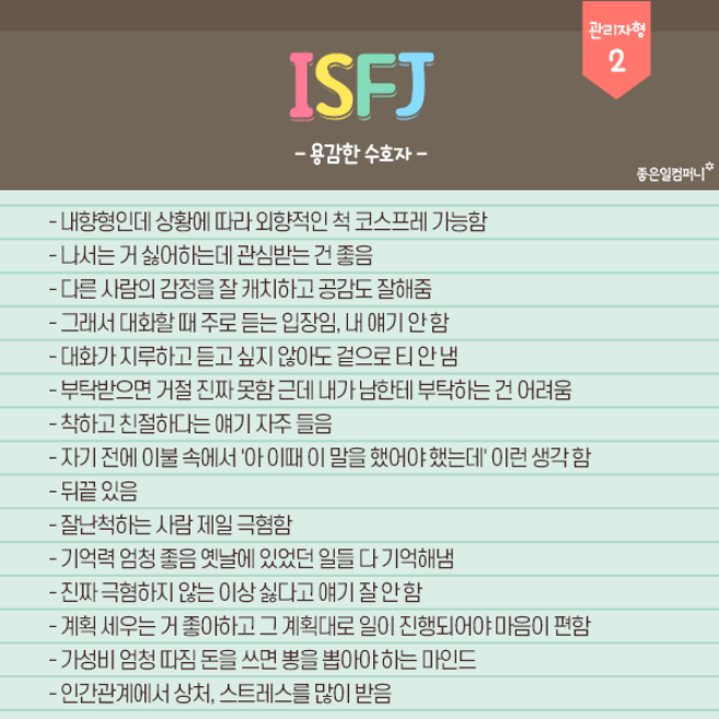여러가지 MBTI 유형 중에서도 가장 잘 맞다고 생각하는 내용입니다.