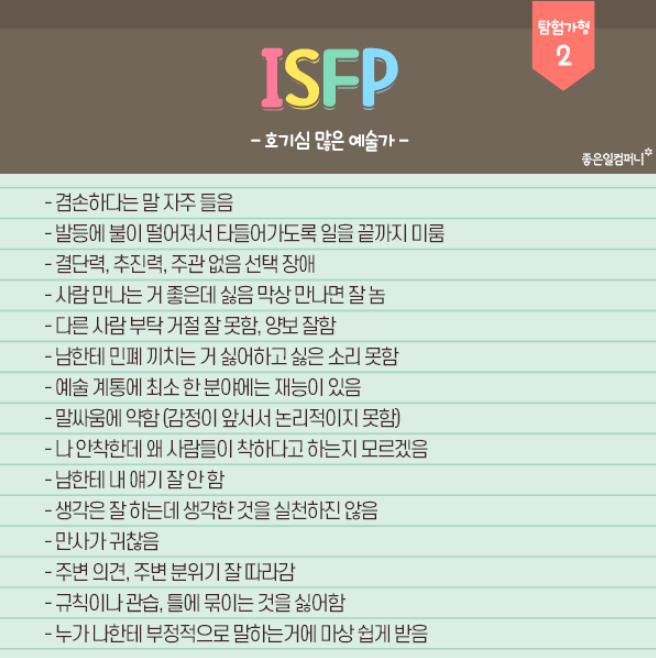 ISFP : 호기심 많은 예술가